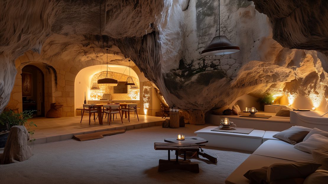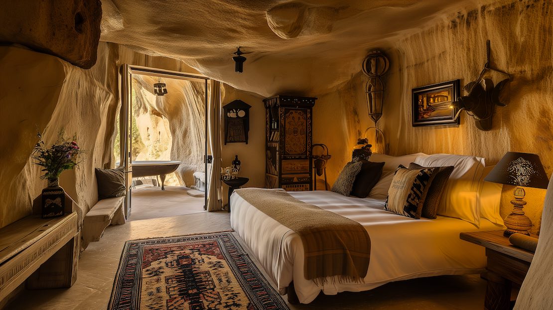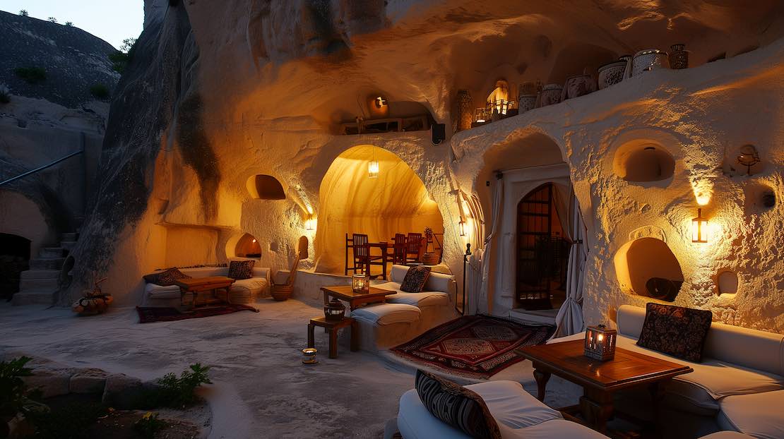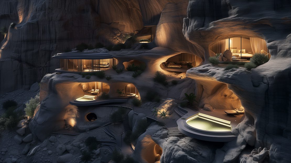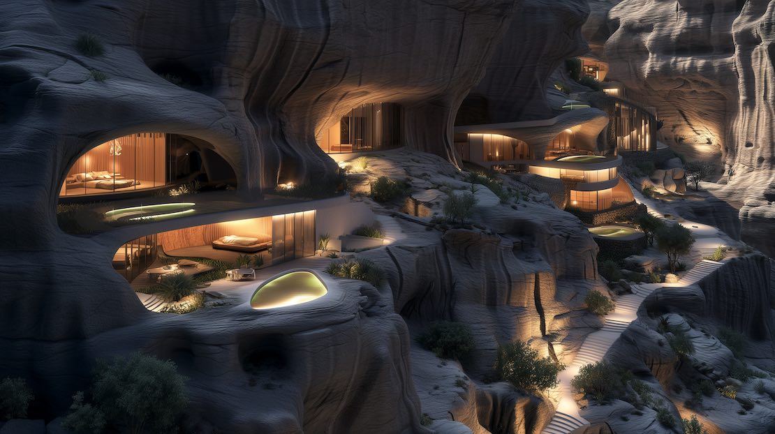 项目简介:石窟野奢酒店项目,设计灵感源自克孜尔千佛洞,旨在打造一个现代与古老、自然与心灵对话的空间。采用曲线墙体、天然材质和简约美学,每个细节旨在促进内心探索和自我发现。设计强调光线的作用,自然光和人工照明共同营造生命般的动感和神秘氛围。项目不仅提供豪华住宿体验,也是精神滋养和心灵成长的场所,反映了对建筑艺术和人类精神追求的深刻理解。