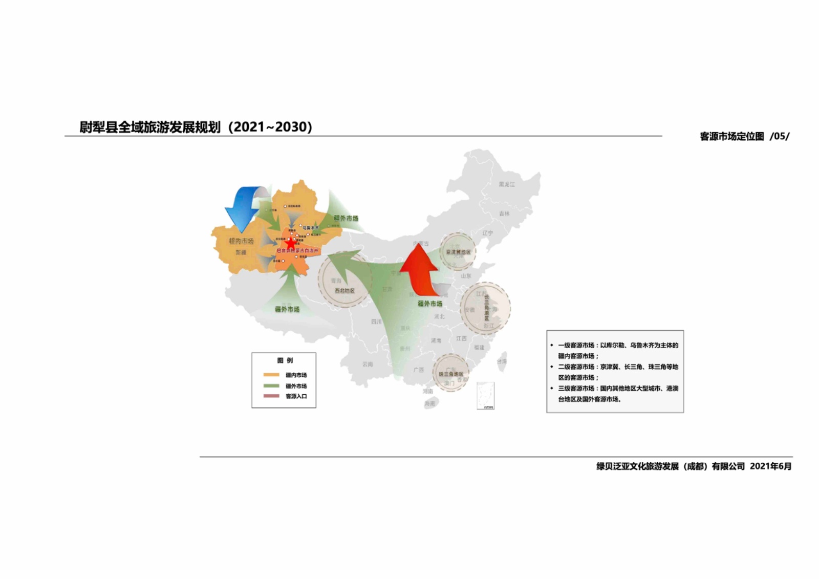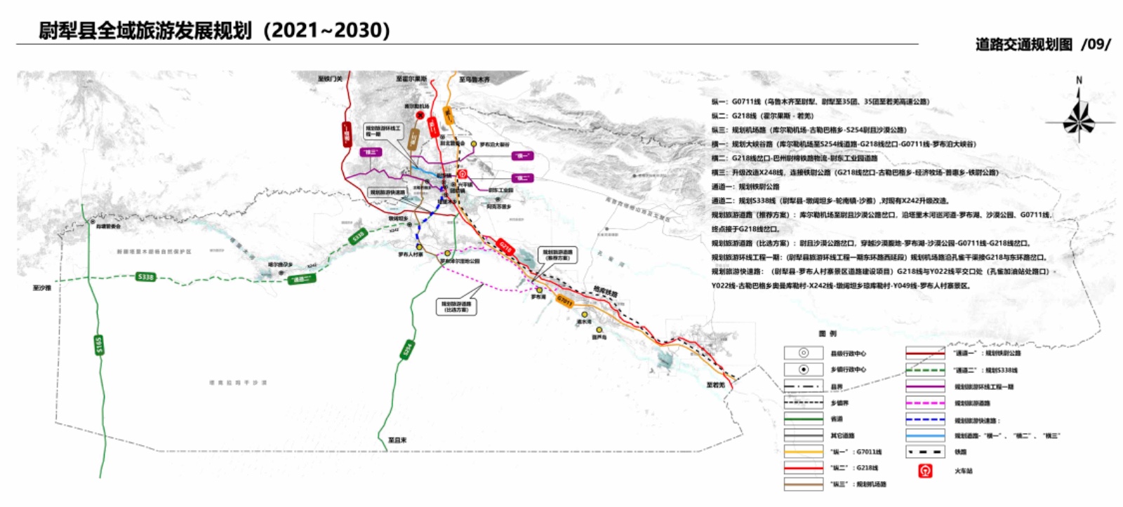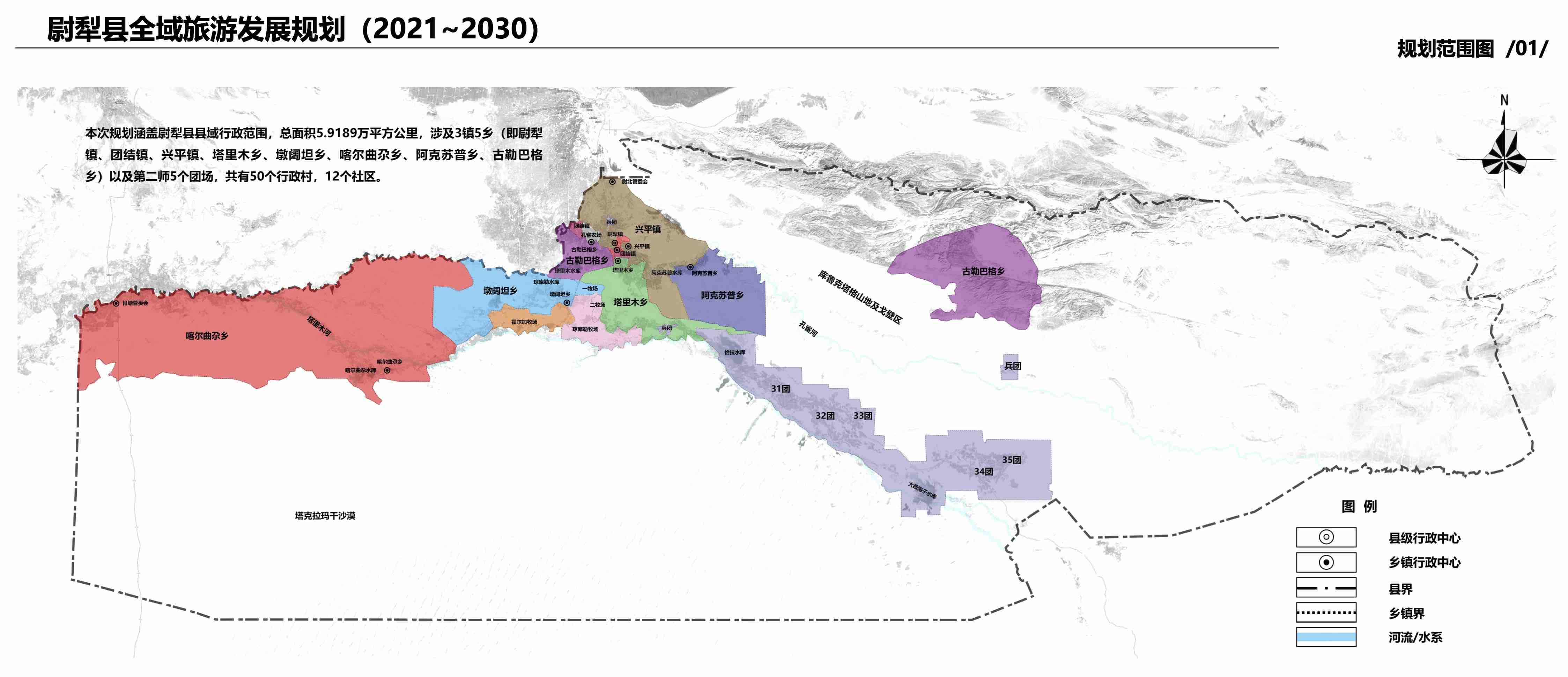 项目简介:尉犁县全域旅游规划工作始于2020年,我们以挖掘尉犁县当地历史文化底蕴和自然资源为核心,旨在激活地方经济、推动乡村旅游繁荣,实现文化旅游资源的保护性开发与利用,促进尉犁县的可持续发展与文化传承。规划中提出以“罗布人村寨景区+尉犁县城”为双核引爆尉犁县全域旅游发展,构建“一带一环两核三区六点”的旅游空间布局,三区联动,六点助力,实现多元化、高品质的旅游体验。即:一带:G0711+G218最美自驾风景廊道;一环:尉犁县全域旅游环线;两核:罗布人村寨、尉犁县城;三区:沙漠探险旅游区、乡村旅游体验区、古烽燧遗址保护区;六点:达西村、古勒巴格村、琼库勒村、霍尔加村、喀尔曲尕村、阿克苏普村。时至2023年6月,尉犁县成功入选自治区全域旅游示范区创建名单。